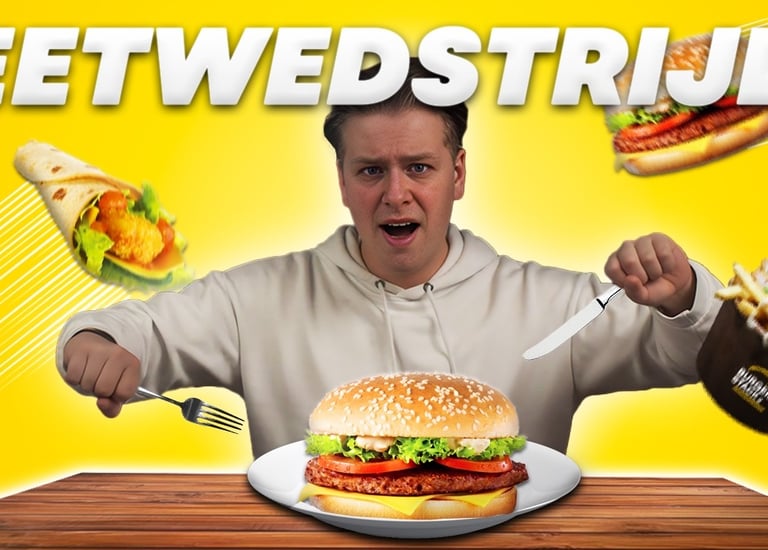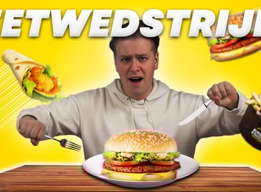 Voor een samenwerking met Burger Stack kwamen we op het idee om een random eetwedstrijd te houden met hun menu.
